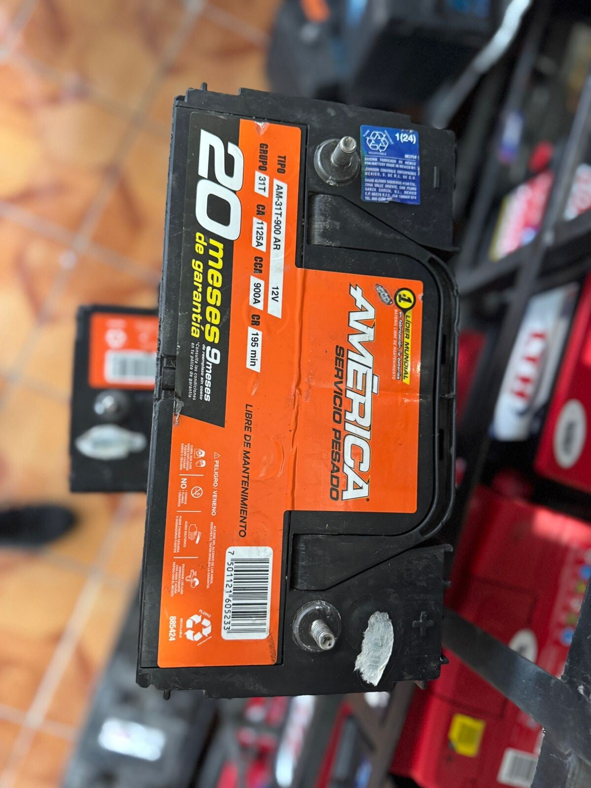 Batería de 12 voltios para servicio pesado, con una alta capacidad de arranque en frío de 900 amperes y aproximadamente 190 minutos de reserva, diseñada para camiones y maquinaria con alta demanda eléctrica. Cuenta con terminal tipo tornillo que mejora la conexión, es resistente a vibraciones y uso rudo, y ofrece un rendimiento confiable y continuo en condiciones exigentes